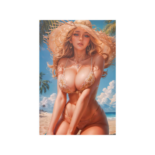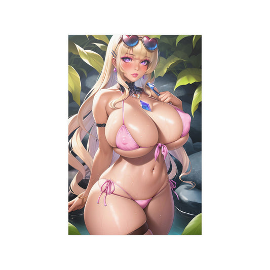 Waifu Poster | Hot Anime Girl | Ecchi | Busty Blonde | Huge Tits | Bimbo | Gyaru